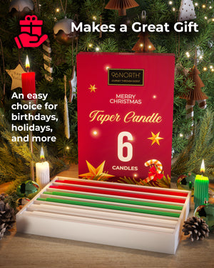 - Beautifully Gift-Ready: Packaged in a charming holiday box, this set of Christmas taper candles makes a delightful gift for loved ones or a festive treat for your own home.