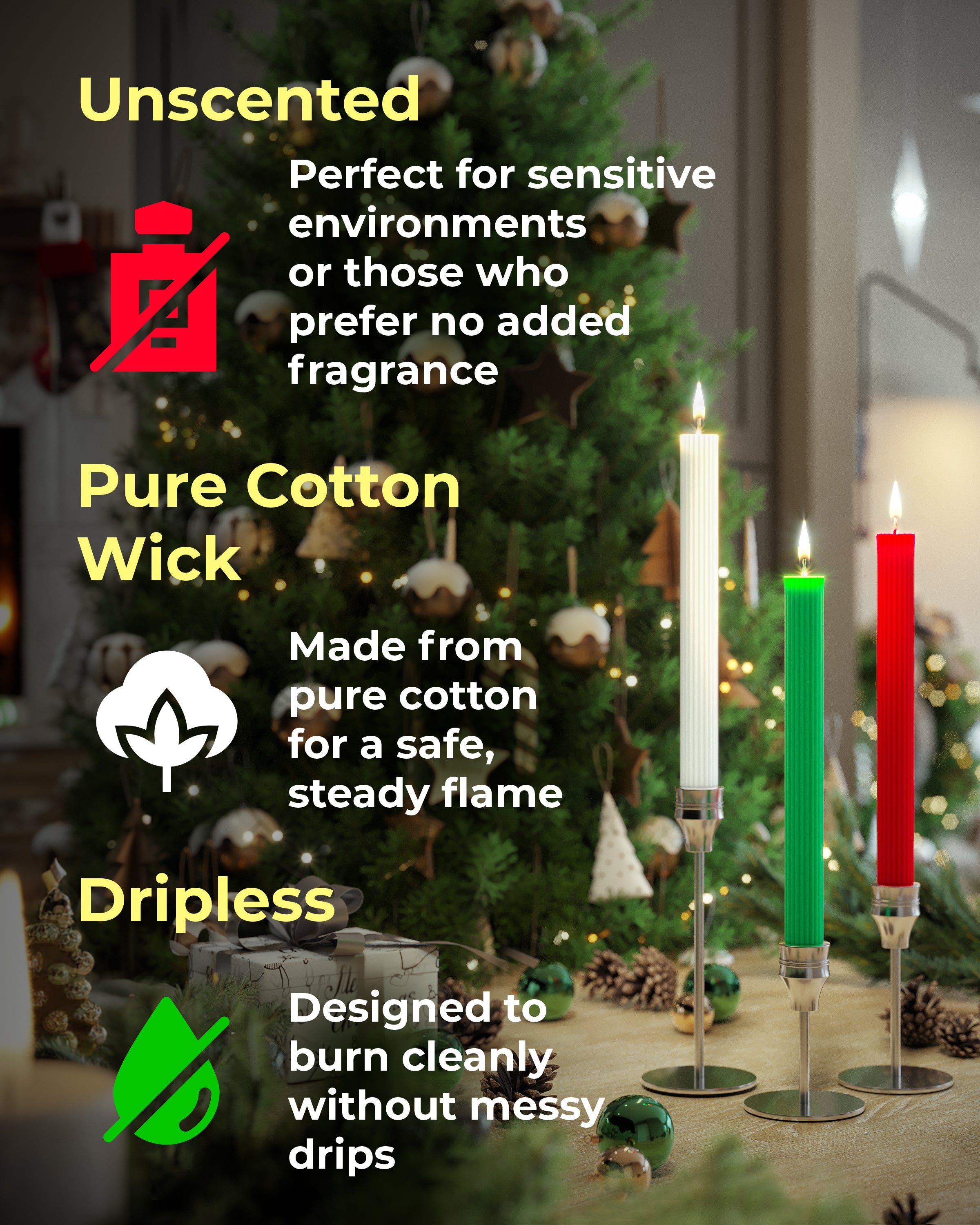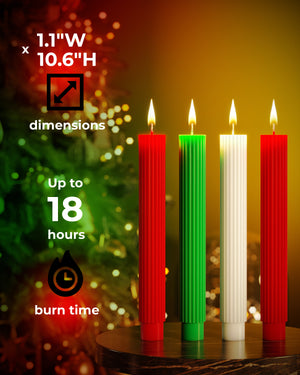 - Perfect Holiday Glow: Each 10.6-inch candle burns cleanly for up to 18 hours, providing a warm, dripless glow for your Christmas dinners, parties, or quiet evenings.