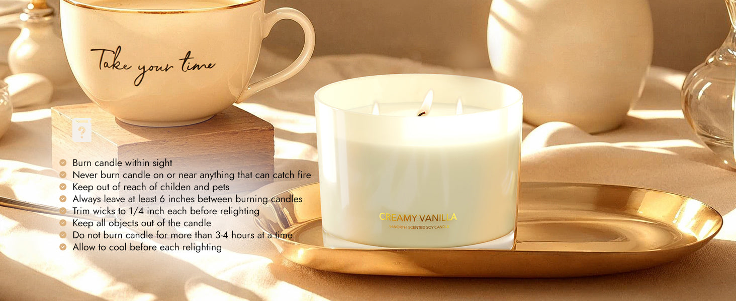 Please adhere to the advice below to safeguard your safety and prolong the life of your candle: