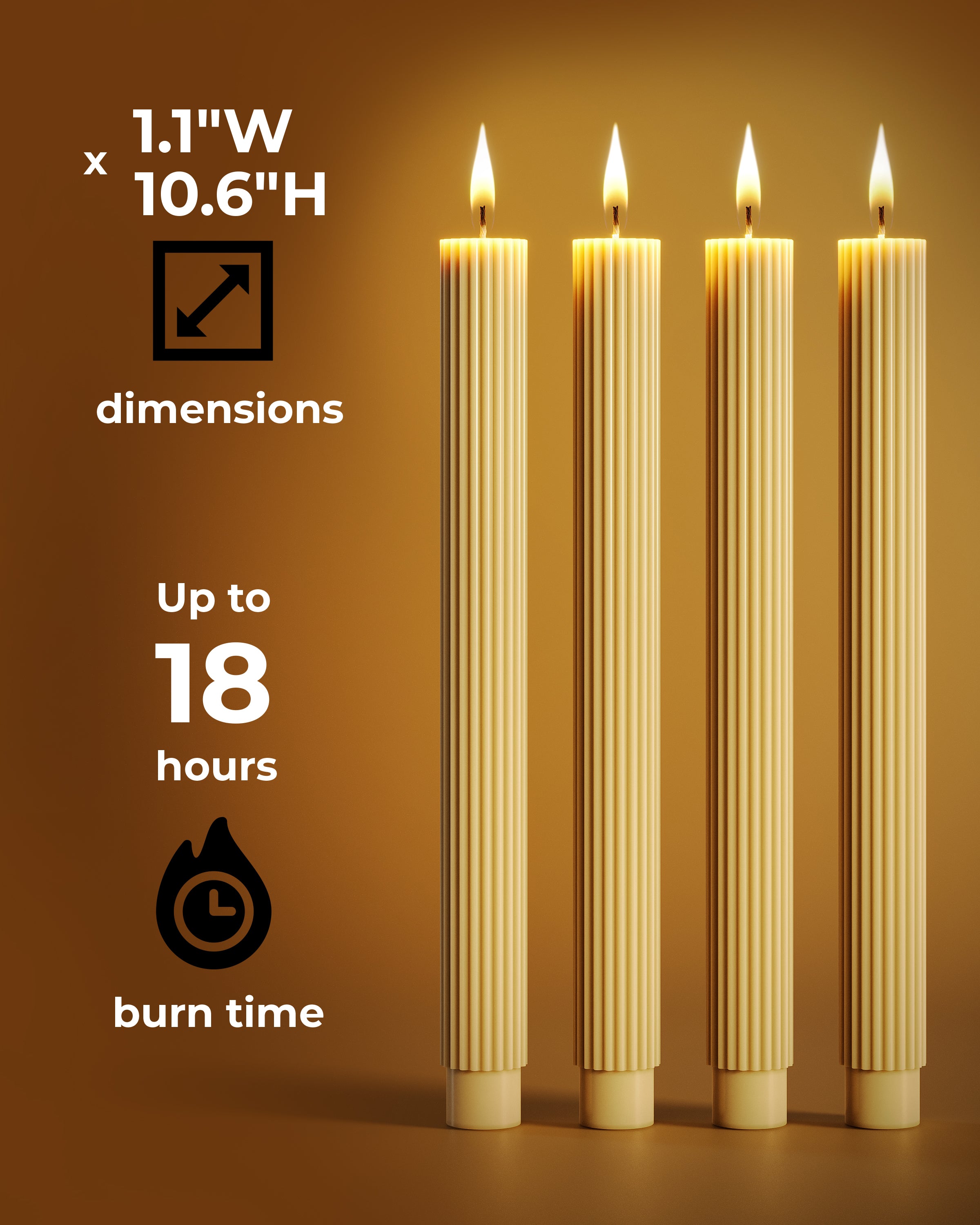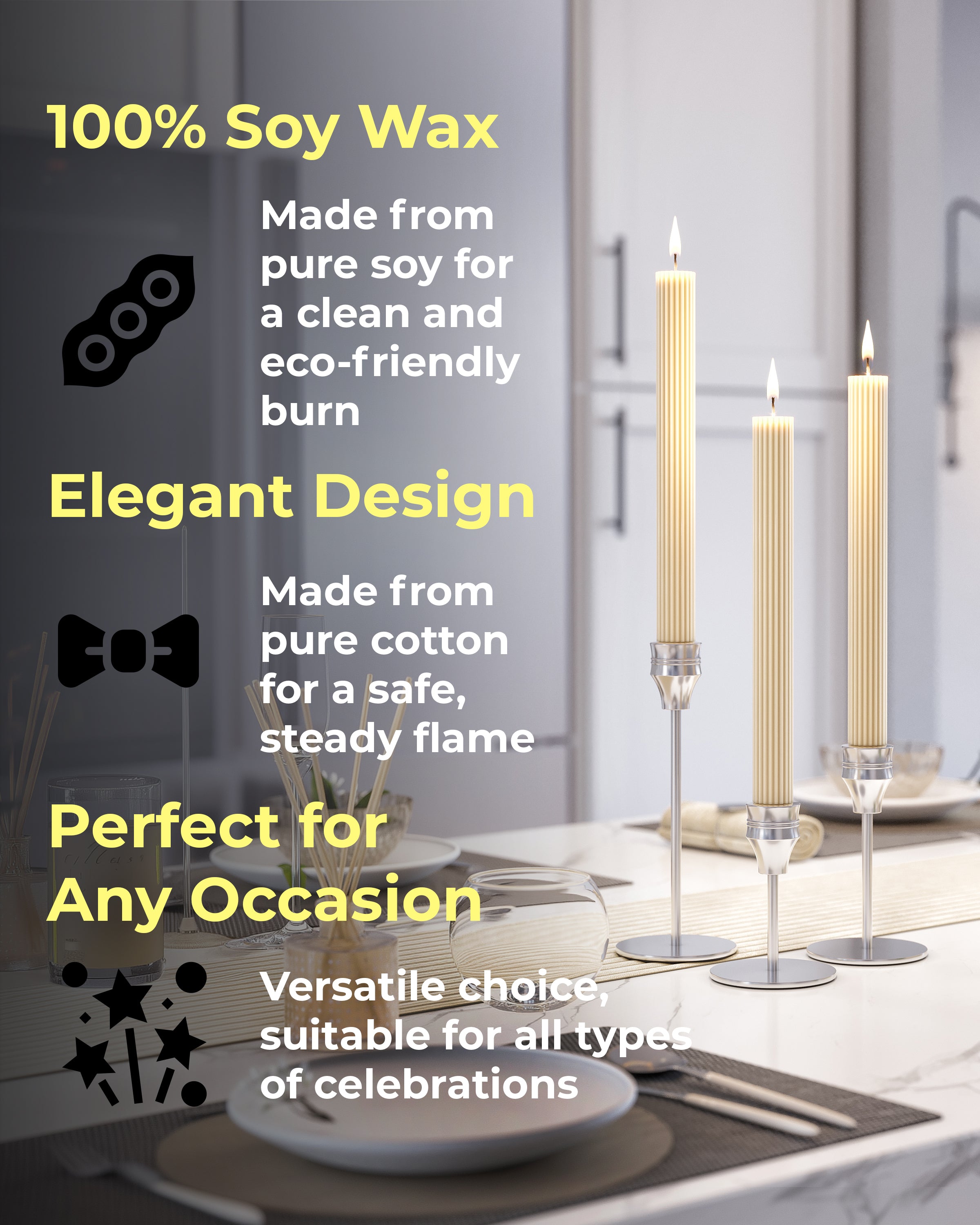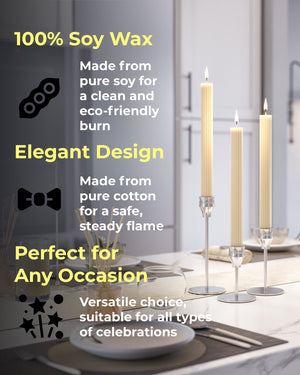 - Long-lasting Glow: Enjoy 14 hours, 18 hours and 22 hours of clean, steady burn time. Made with premium soy wax and cotton wicks, our ivory candlesticks offer a warm ambiance without dripping or mess.