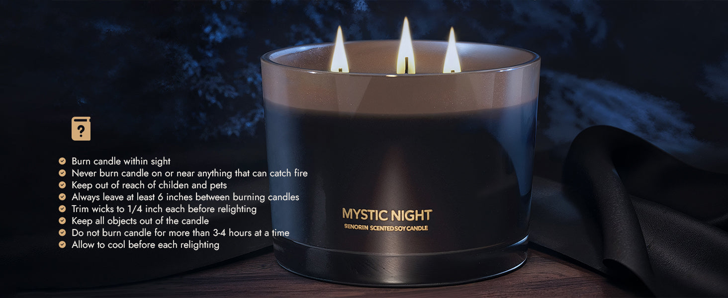 Please adhere to the advice below to safeguard your safety and prolong the life of your candle: