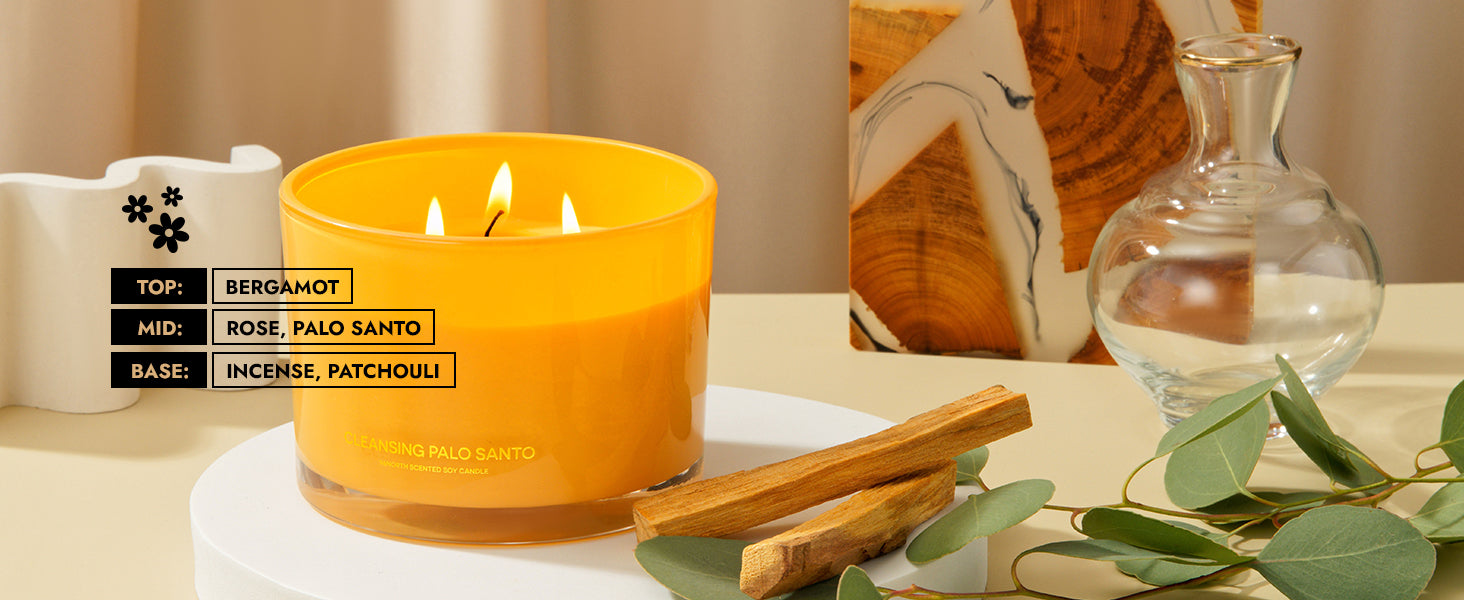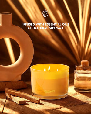 Bergamot: A lively top note that invigorates the senses, infusing the air with a revitalizing zest, igniting a sense of vibrancy and freshness. Rose: Delicately intertwining with Palo Santo, the soft essence of rose adds a captivating layer, evoking a floral embrace that enchants the atmosphere. Palo Santo: The heart of this candle, exuding its sacred aroma, embodies ancient wisdom and spiritual allure, weaving a tapestry of intriguing mysticism. Incense: Infusing depth and reverence, the smoky tendrils of incense enrich the ambiance, bestowing a sense of sacredness and contemplation. Patchouli: Anchoring the fragrance with earthy richness, patchouli grounds the olfactory journey, imparting a serene and comforting foundation that lingers in the air.