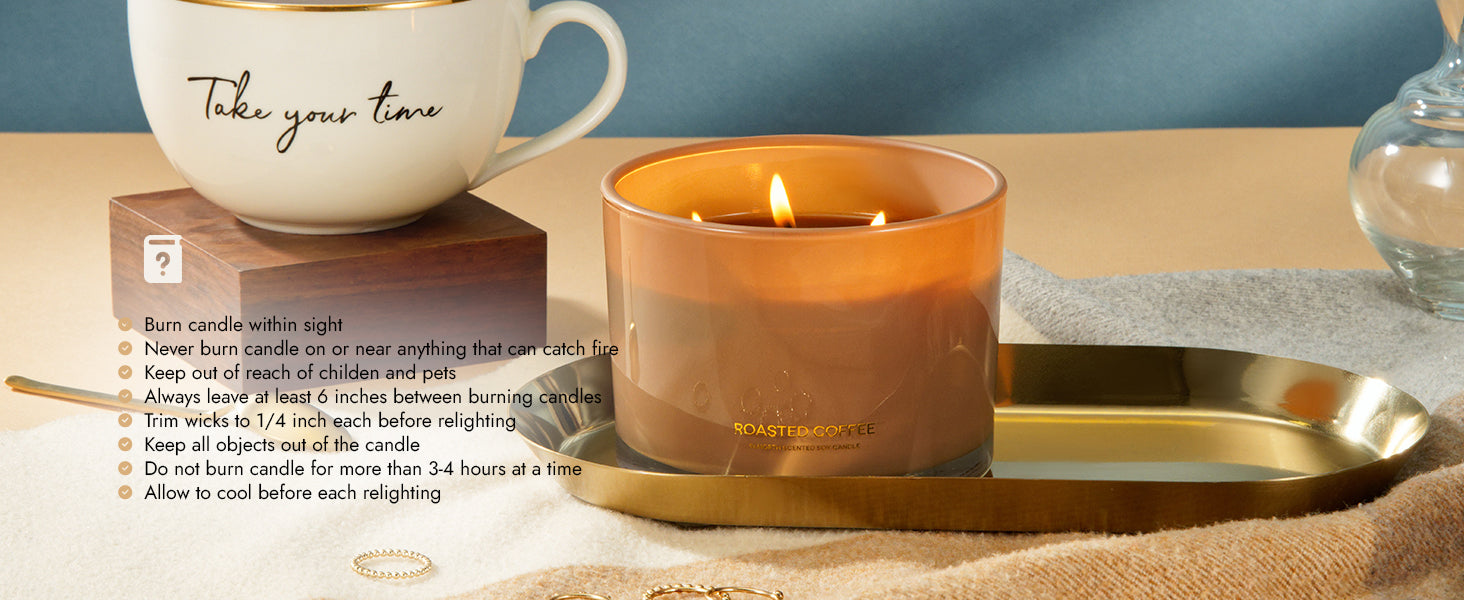 Please adhere to the advice below to safeguard your safety and prolong the life of your candle: